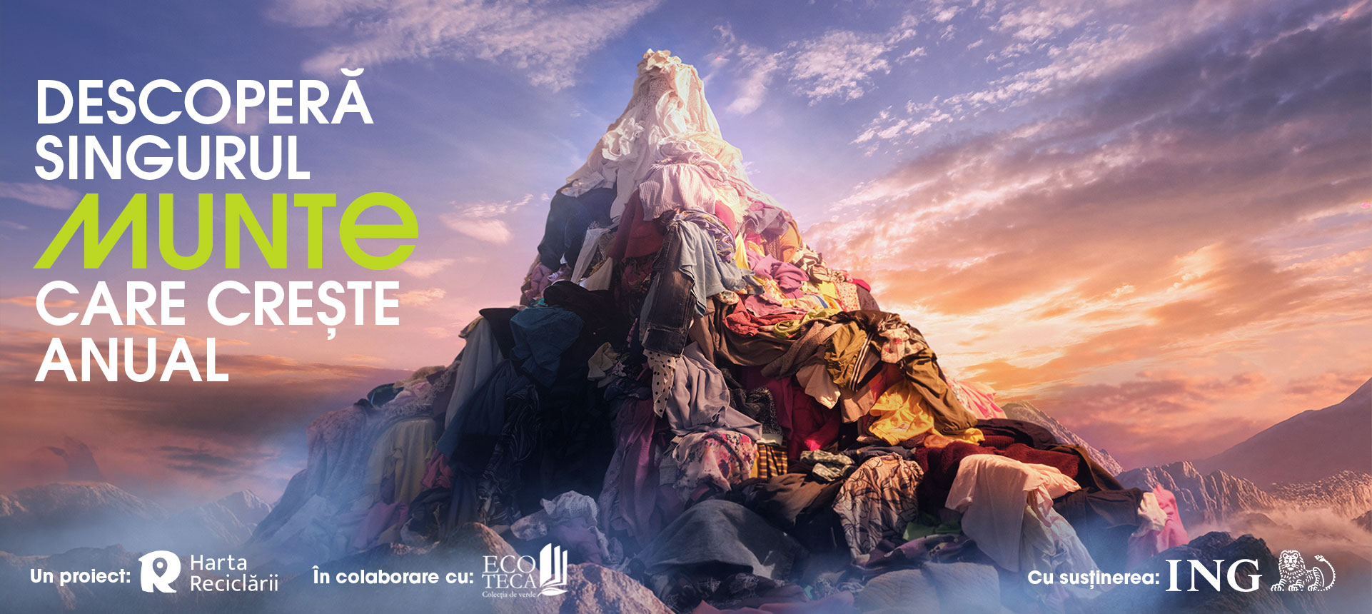 Muntele de Haine este o inițiativă menită să atragă atenția asupra volumului alarmant de deșeuri textile care poate fi combătut cu soluții concrete: reutilizare, reparare, donare, colectare separată.